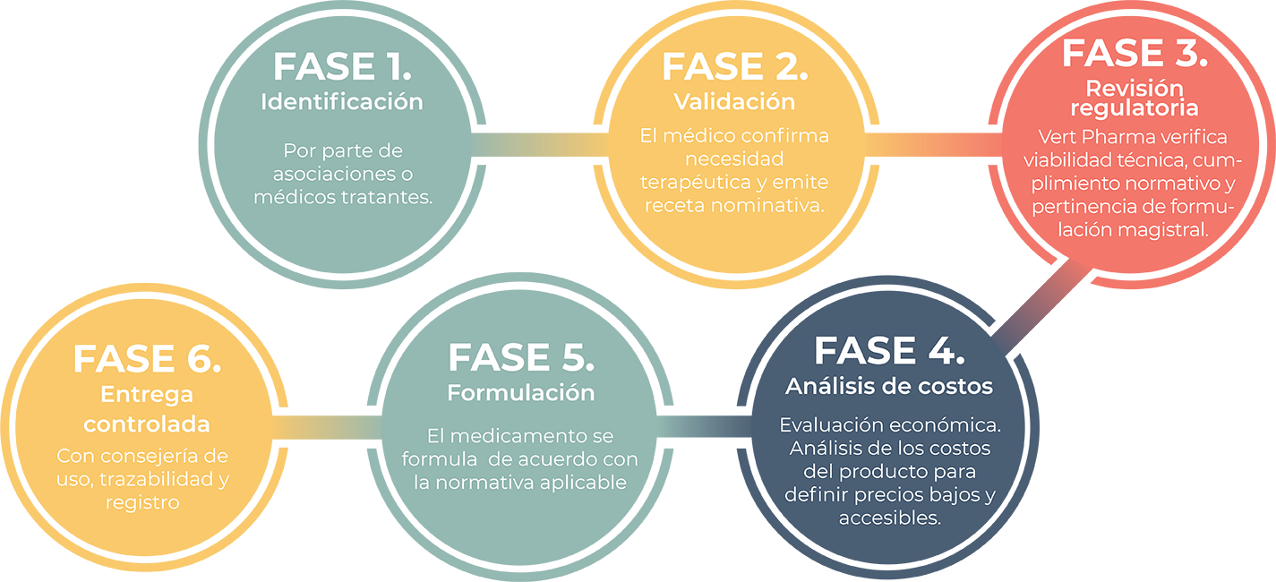 En nuestro país, un gran número de pacientes quedan sin acceso a tratamiento debido a varias problemáticas como la descontinuación de medicamentos de uso poco frecuente, desabasto de los principales activos, falta de disponibilidad de medicamentos catalogados como huérfanos, interrupciones en cadenas de suministros internacionales o por falta de alternativas terapéuticas equivalentes.